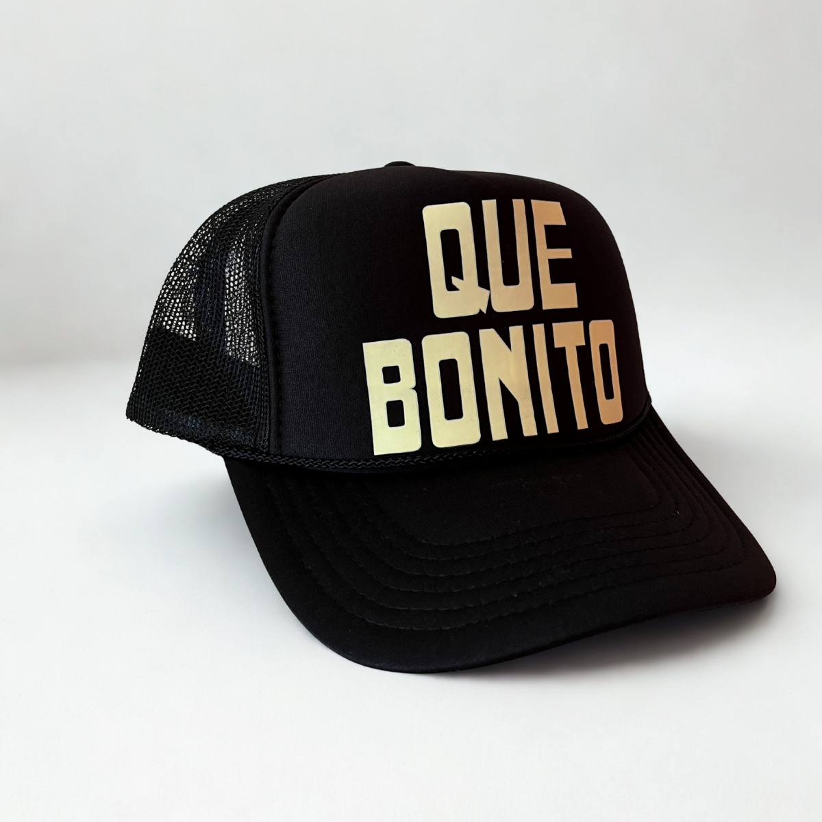 Mesh panel hat with our Que Bonito logo on the front. Drink good coffee while looking good at the same time!